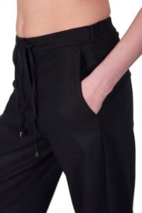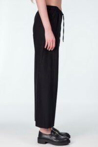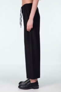 Pantalone modello jogging, caratterizzato da una silhouette con gamba morbida.