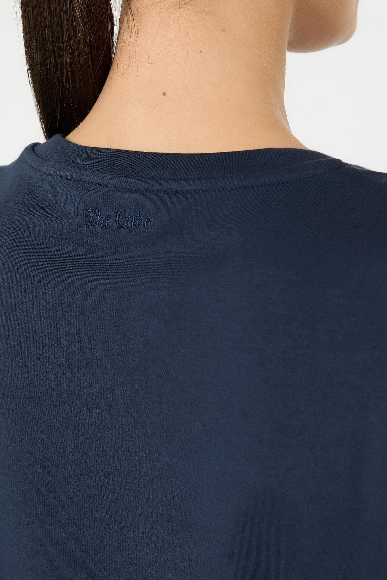 T-shirt basic, personalizzata con ricamo di collezione al centro sul davanti.