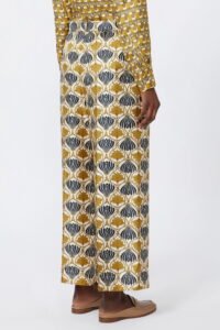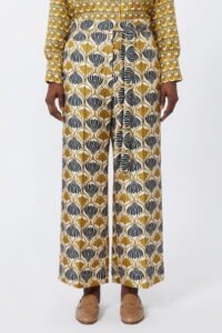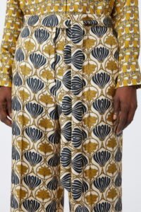 Pantalone con motivo stampato all over e taglio cropped alla caviglia.