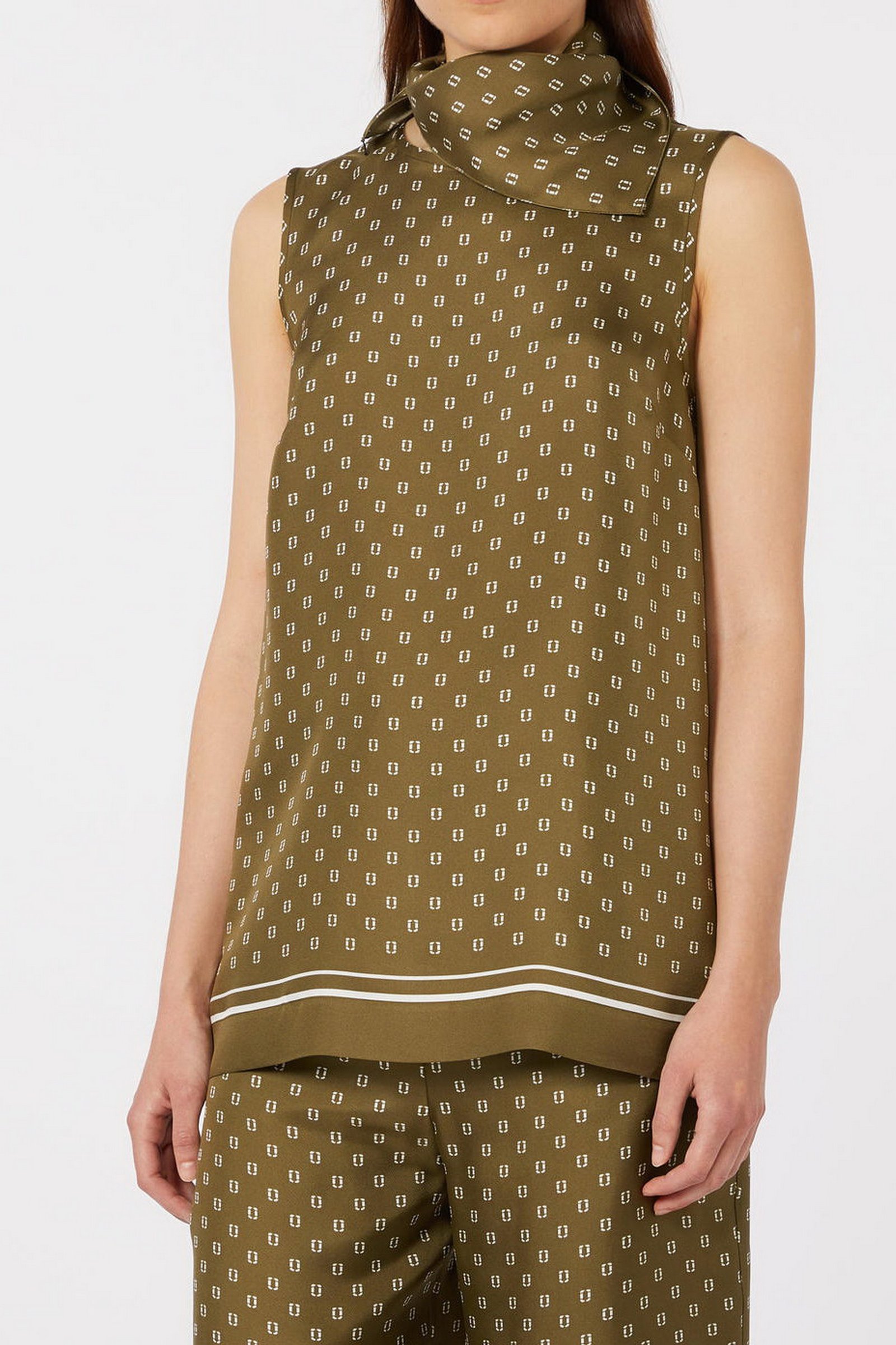 MAX MARA STUDIO Top in twill di pura seta – Kaki/Bianco