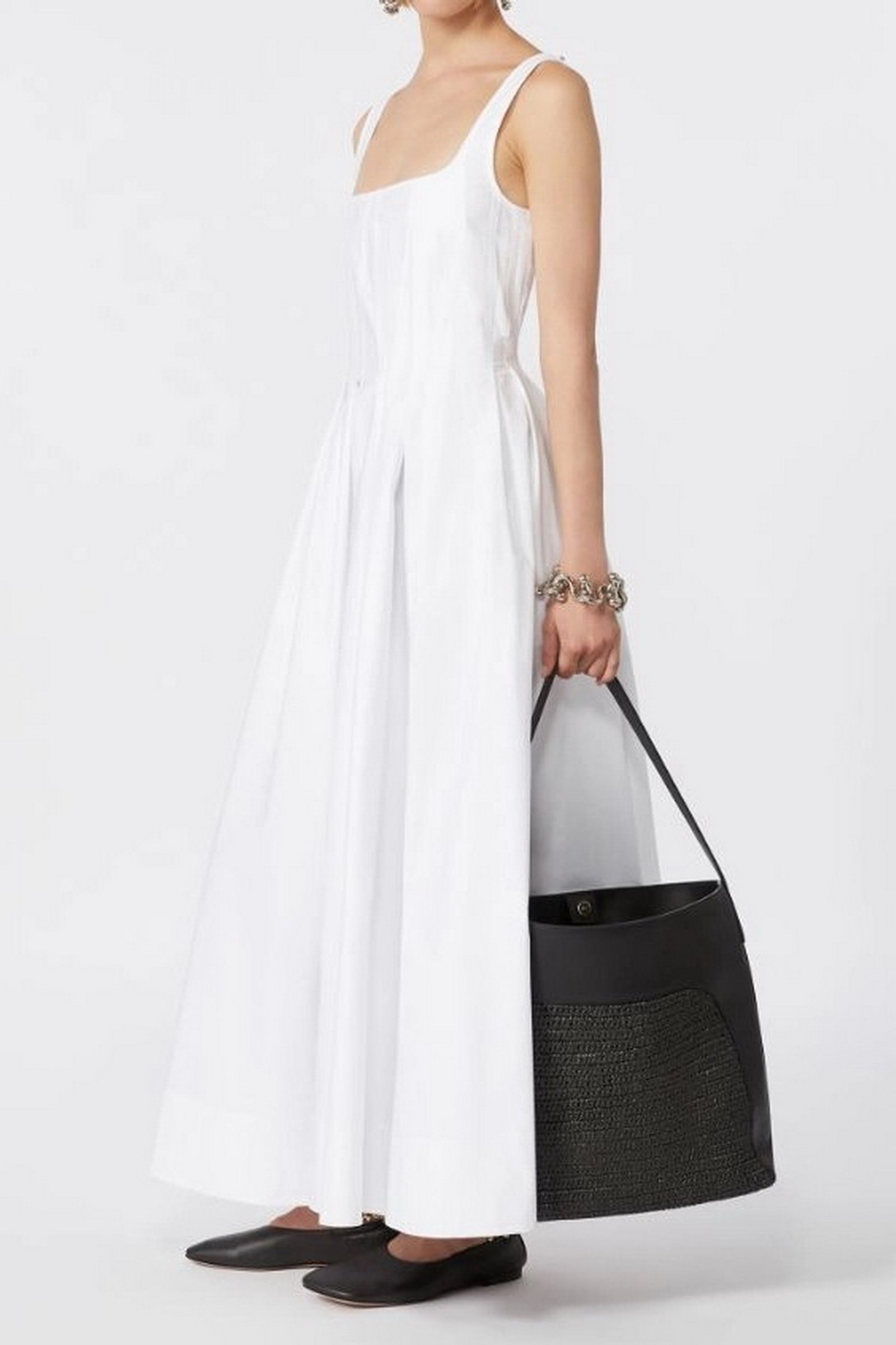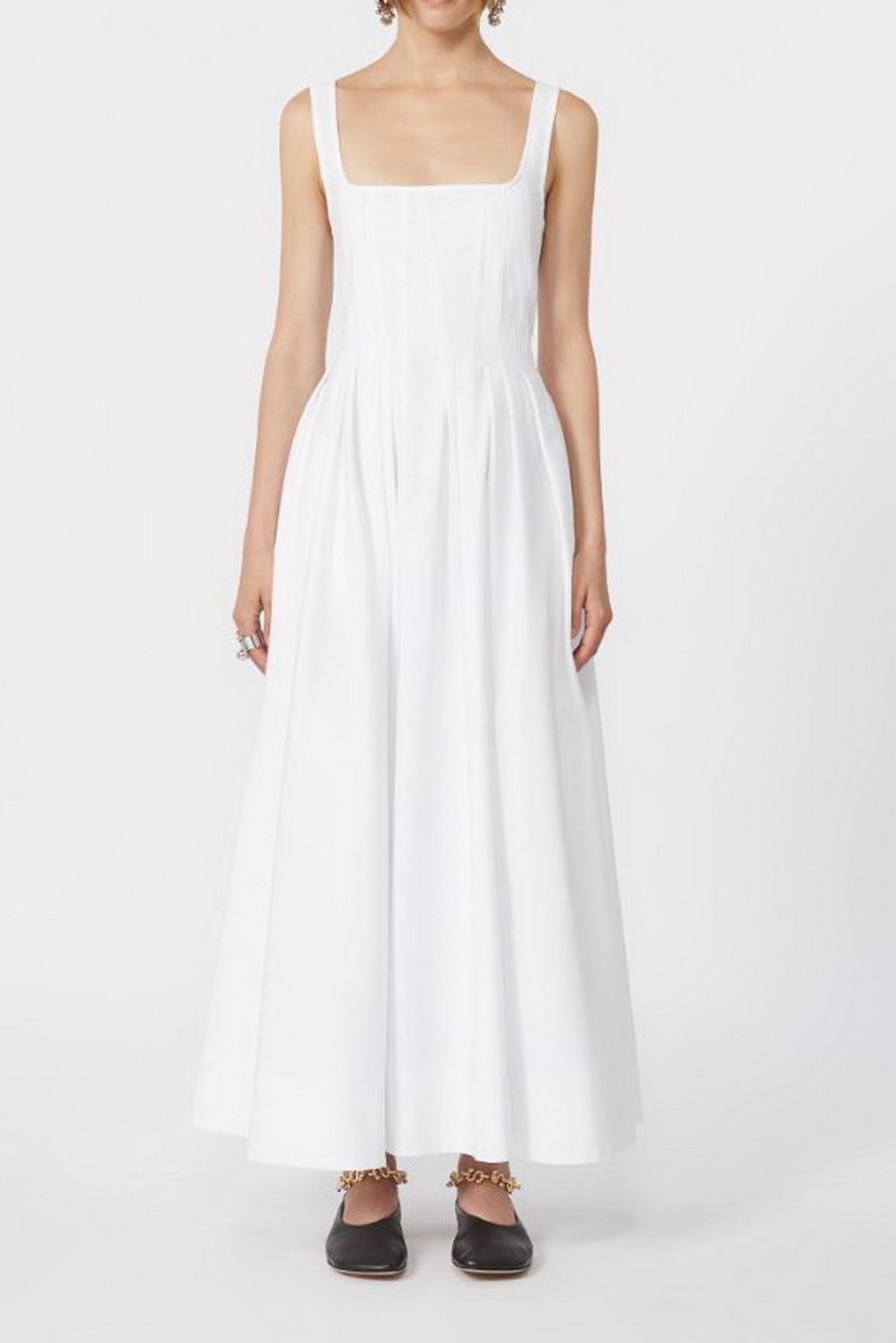 SPORTMAX Abito lungo smanicato in puro cotone – Bianco ottico