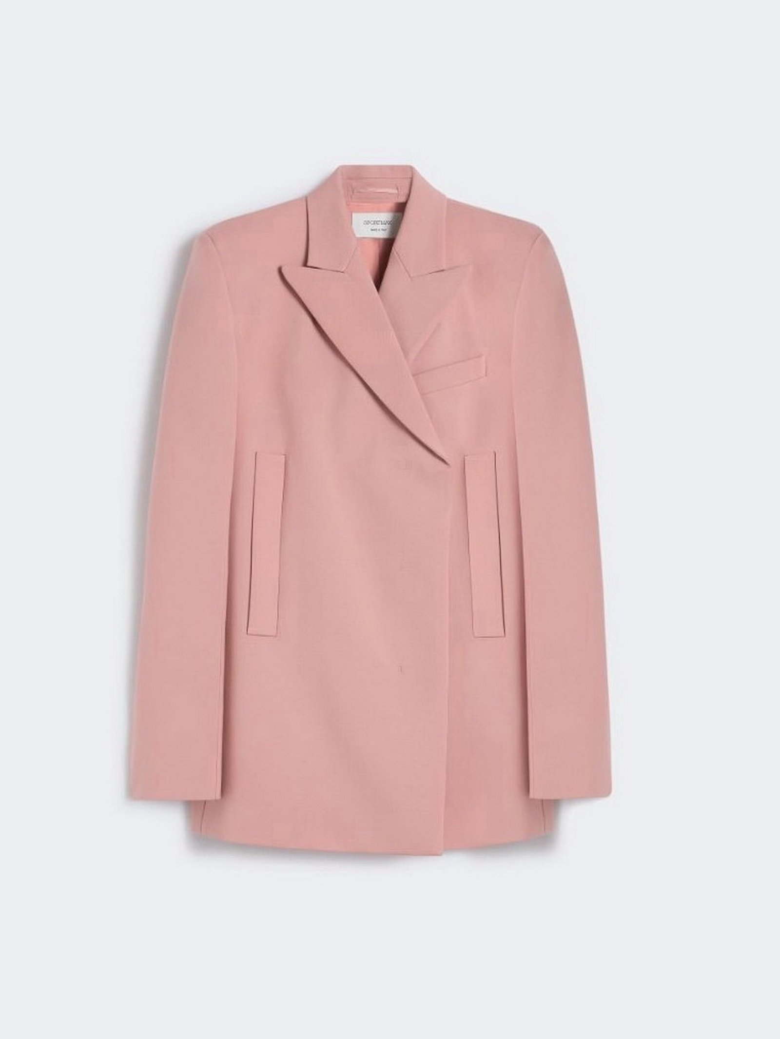Tessuto 95% lana vergine, 5% elastan; fodera 70% acetato, 30% poliestere; fodera maniche 97% viscosa, 3% acetato.