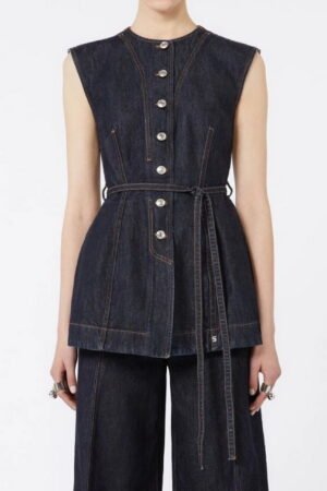 SPORTMAX Top smanicato in denim – Blu notte