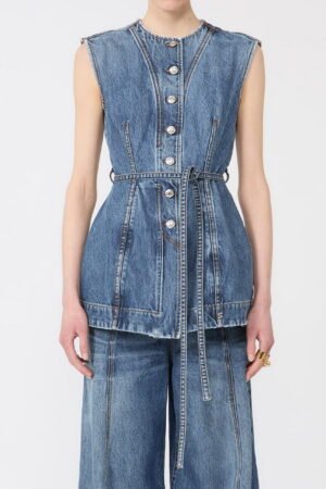 SPORTMAX Top smanicato in denim – Blu vintage
