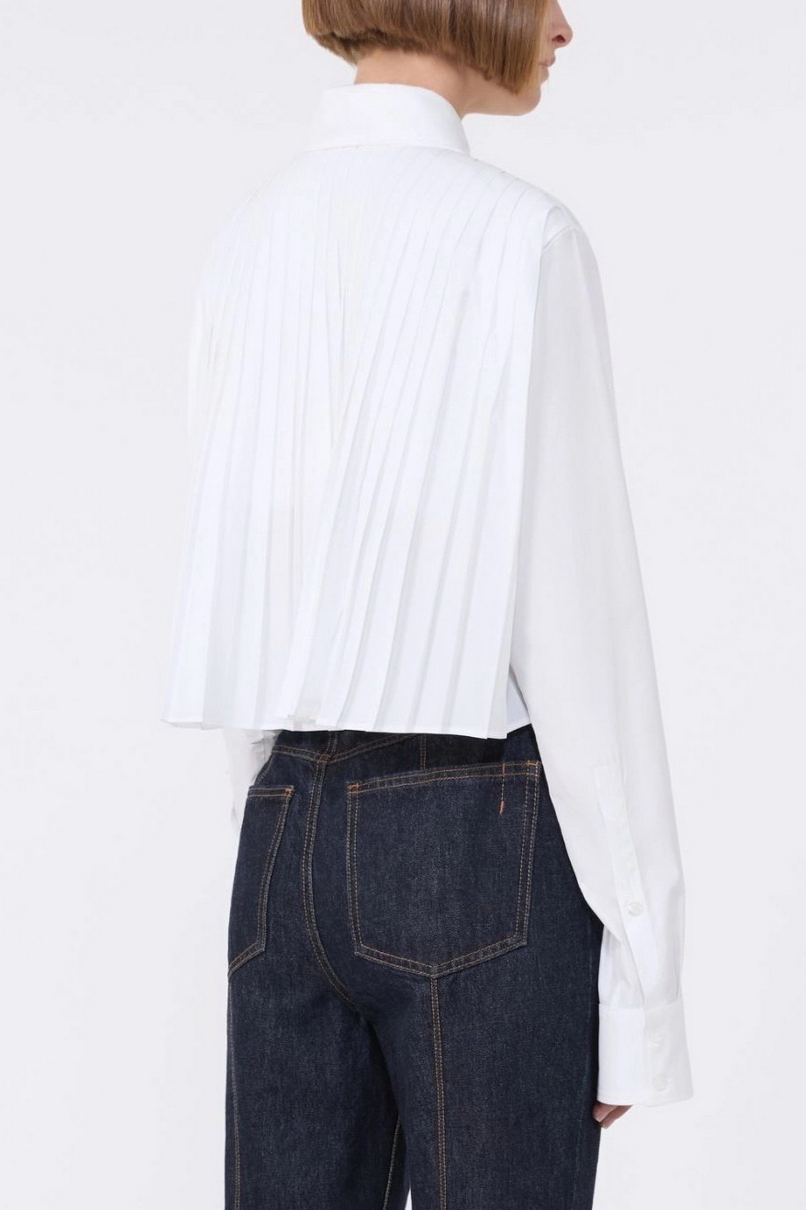SPORTMAX Camicia crop in cotone con retro plissettato – Bianco ottico