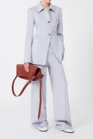 SPORTMAX Blazer sartoriale in lana con retro in plissé – Beige