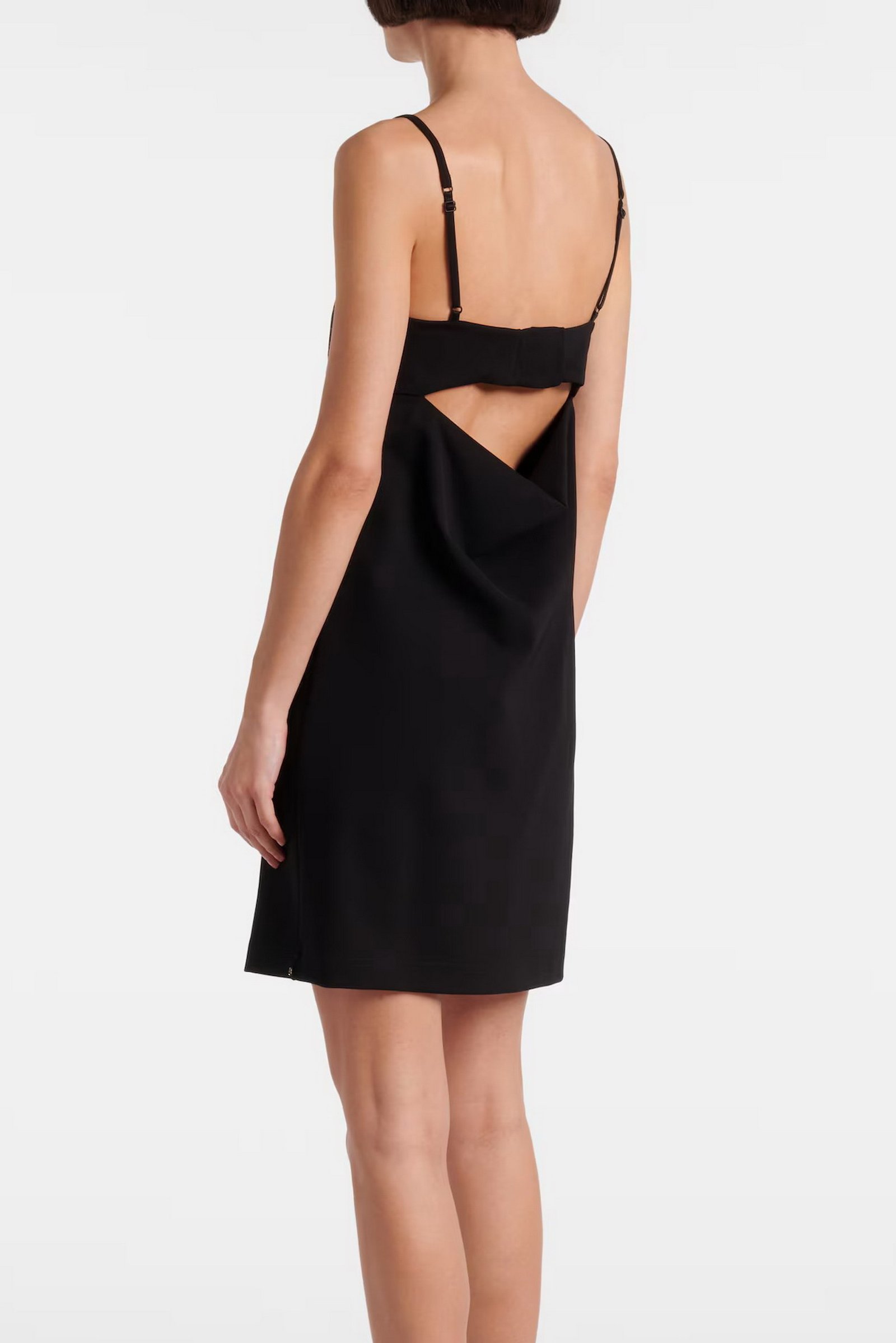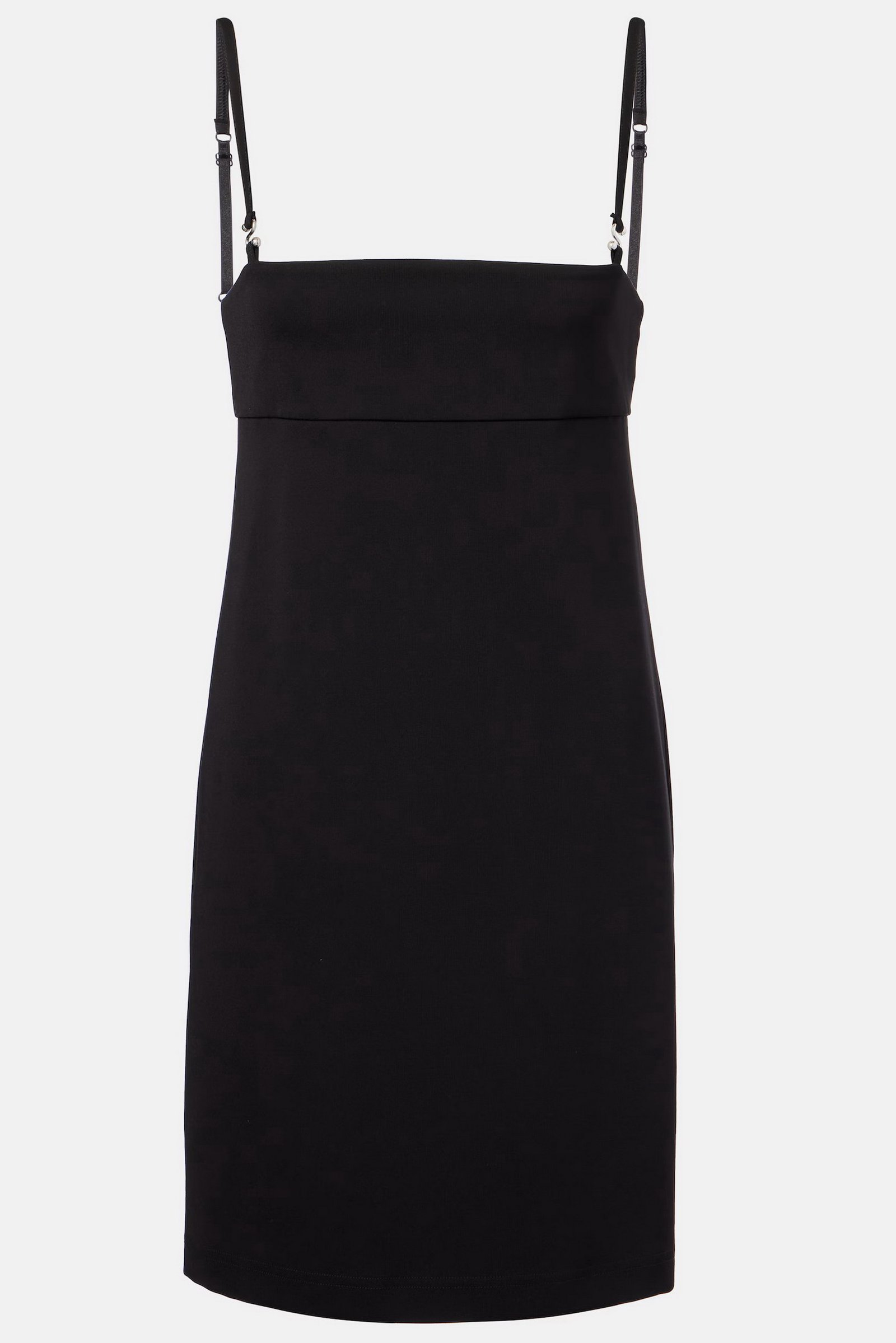 Abito in maglia con fit femminile e aderente. Lo scollo dritto è caratterizzato da spallini regolabili in stile lingerie, con logo metallico sul davanti. Il retro è caratterizzato da fascia alta e cut out che lascia scoperta la schiena con un effetto drappeggiato.
