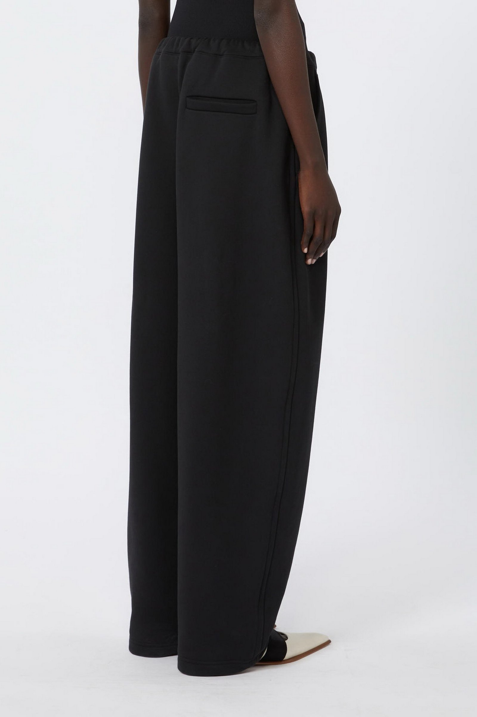 Pantalone morbido in felpa leggera, con coulisse e tasche laterali per una perfetta funzionalità. La linea fluida sulla gamba assicura comfort in ogni occasione.